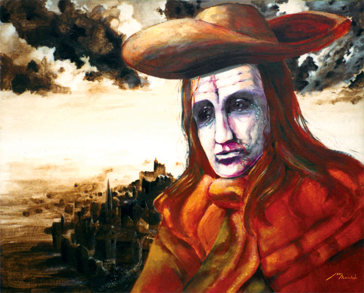 I started the first image of the group in 1989. 'Poisoned' depicts an ailing man in an ominous setting, a mortal experiencing a moment of trouble and weakness. I was interested in seventeenth century northern European paintings explaining the man's costume. It was unintentional that I should follow a painterly style though the somewhat gloomy nature of the image may have a gothic quality about it. By then the goth subculture had been established for a number of years in the United Kingdom. A pattern may have emerged in the following pictures, though I would be reluctant to pigeonhole them.